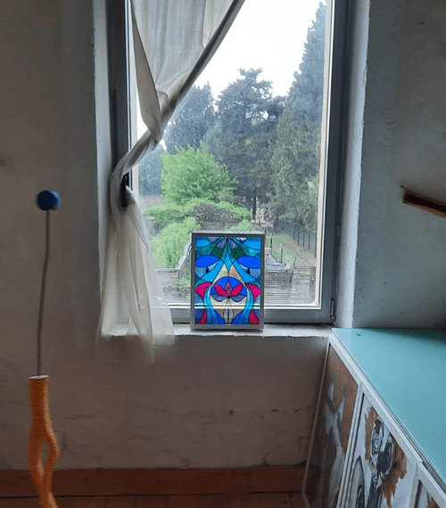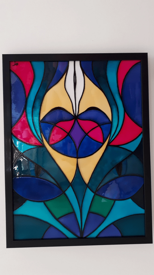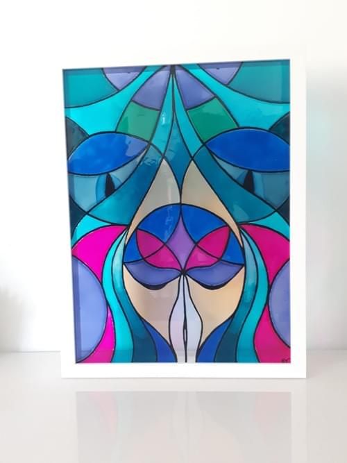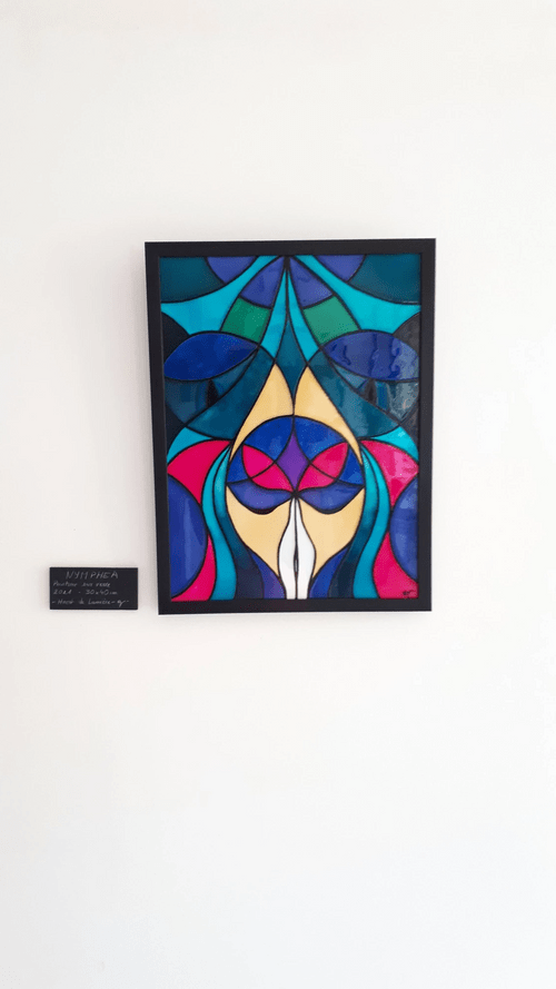 Vendue actuellement sous cadre noir avec fond ou le verre nu sans encadrement. Ouvrage unique.
