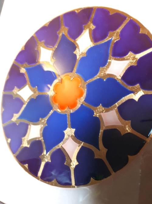 Rosace en sept inspiré d'un édifice religieux de Cheltenham en Grande-Bretagne.